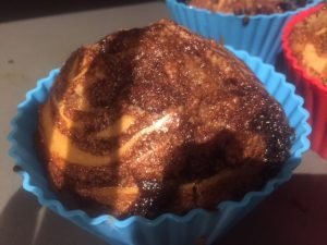 Antes de meterlo al horno, le echamos el sirope de chocolate, sólo por arriba. Ya verás, lo buenas que están!