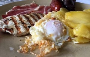 Después vino el Plato Alpujarreño… y es que no se puede ir a Las Alpujarras y no comerte un plato de este tipo. El huevo era de campo, la yema un espectáculo cuando mojabas las patatas » estilo a lo pobre» pero sin pimientos. No se puede competir contra la sencillez y la autenticidad de los productos que crecen de forma natural en un entorno único. Además, de su chorizo y morcillita, el plato alpujarreño, llevaba un filete de secreto y una loncha de jamón. Un plato digno de recordar.