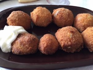 Hemos pasado unos días en Lanjarón, en una cabañita rural con unos amigos ( Casa rural el Nogal). El primer día salimos a hacer un recorrdio andando y Andrea lo vio: Venta El Buñuelo » ahí seguro que se come bien»-dijo… Y hay que decir que razón no le faltaba. Al día siguiente, a la hora de comer ya estábamos todos sentandos pidiendo «vino del terreno»( un tinto joven, muy conseguido), un plato de jamón de la tierra, unas croquetas de setas, sopa de picadillo, migas y plato alpujarreño, entre otras cosas.